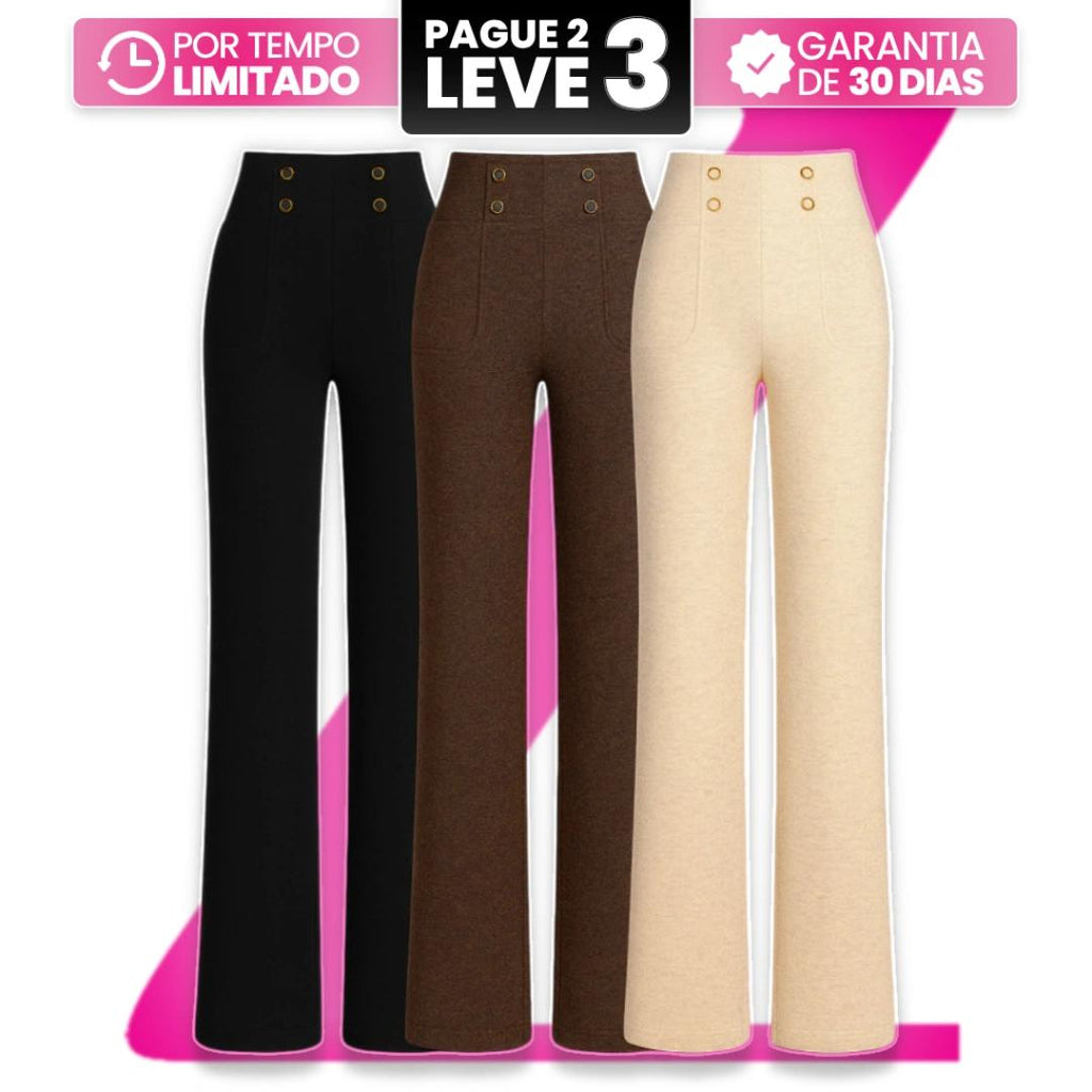 [Leve 3, Pague Só 2] Calça Solena Feminina em Algodão, Poliéster e Viscose de Cintura Alta com Botões Frontais